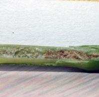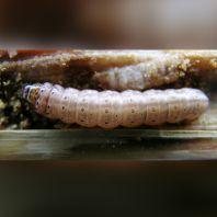 Spring wheat and durum are the primary host crops. The larva feeds on the developing pith inside of the plant stem, reducing crop yield and quality. As the plant matures, the larva moves to the base of the stem and cuts a V-shaped notch in the stem. These notched stems are prone to breakage and falling, making the grain unharvestable.