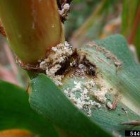 Corn leaf aphid: Before soft dough, calculate the average number of aphids on 20 random tillers at five sites across the field. When counting, note predators, parasitized aphid mummies or aphids killed by fungi.