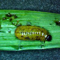 Larvae feed on upper surface of leaves, causing strips of damage. Crop yield and quality can be affected if flag leaf is damaged, but yield losses are highly variable and often negligible. Adults also feed on upper leaf surfaces but economic injury is from the larvae. Wheat, barley and oats are the most common host crops.
