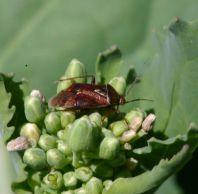 Scout when temperature is at least 15 C and sunny, when lygus are most active. Canola: At end of flowering and early podding, take 10 sweeps (180 degrees) at 10 sites in the field. Faba bean: At flowering to early pod stage, take 25 sweeps at five to ten sites in the field. For both crops, count 3rd instar nymphs and larger (black spots on their backs and developing wing pads) and adults at each site. Exclude early instar nymphs from the count.