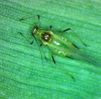 Corn leaf aphids suck sap from plants, causing stunted growth, curled leaves and reduced yield. Honeydew excretion can promote sooty mould growth, reducing photosynthesis. Adult and nymph Russian wheat aphids suck sap from leaves causing streaks between veins. Prevents normal unrolling, bleached heads and poorly formed grain.