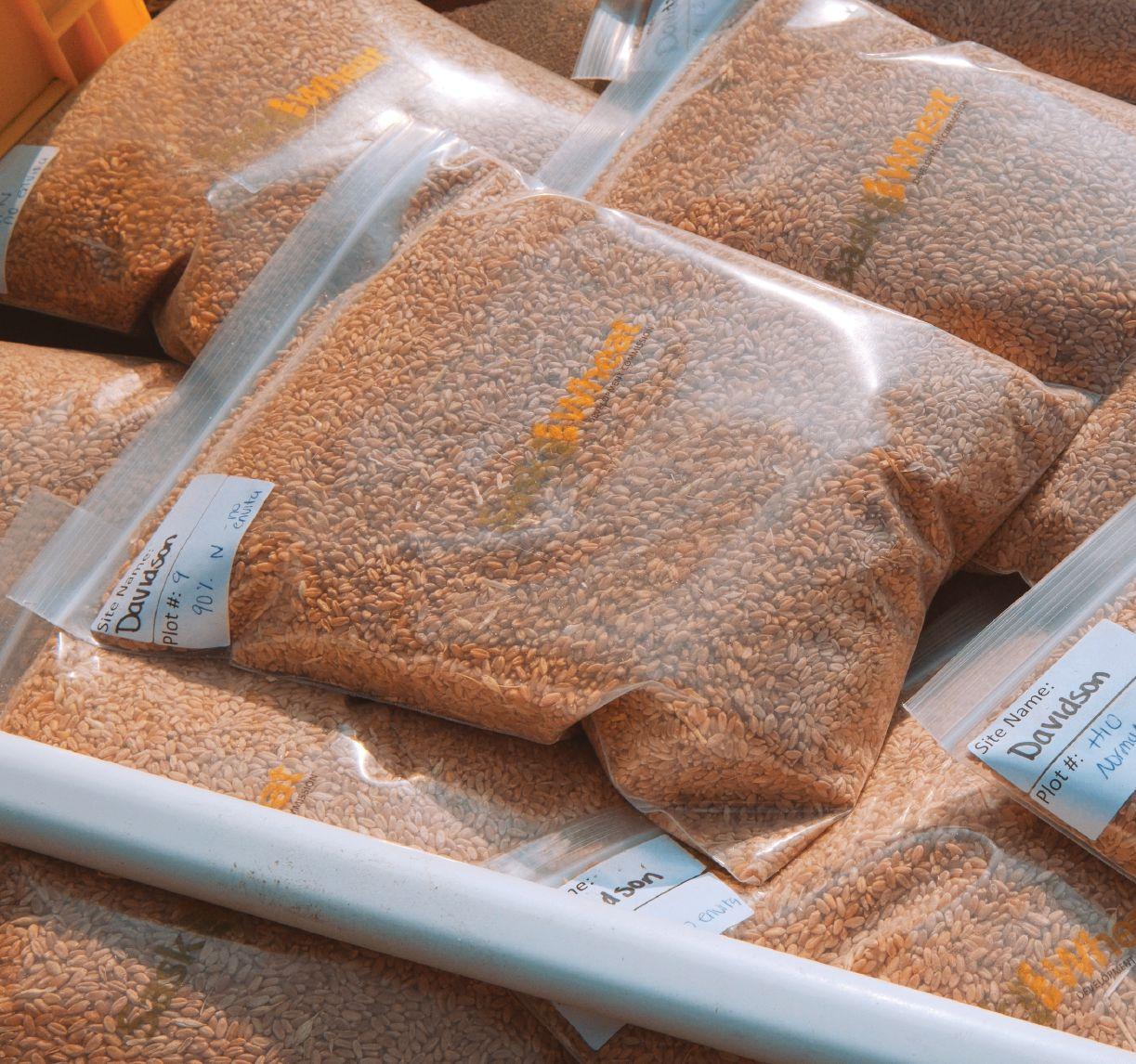 ABOVE Wheat samples ready for further testing from on-farm research trials.