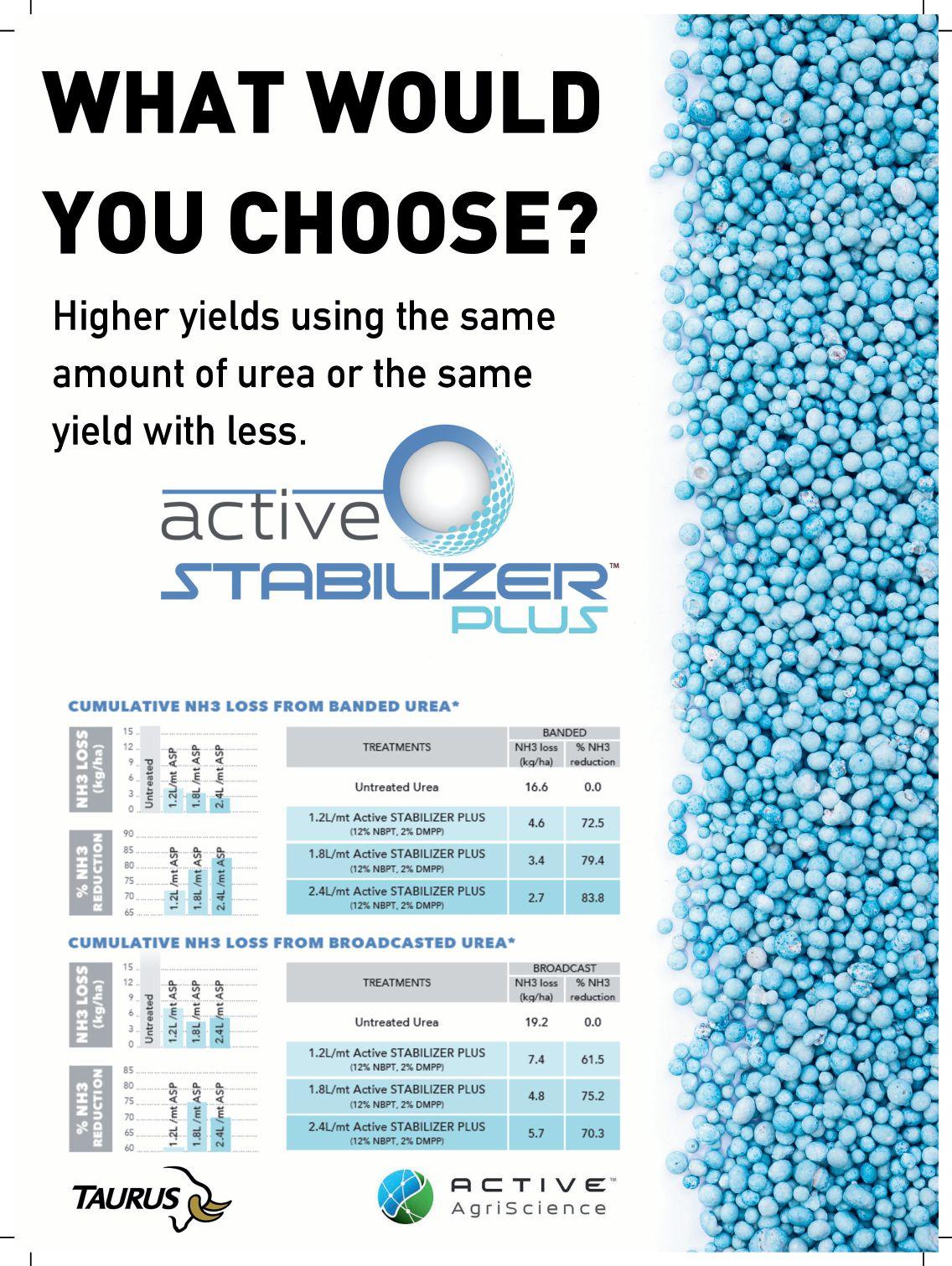 efficiency fertilizers and an untreated urea were compared. Three timing/placements treatments were compared: all N at banding; 30 per cent banded at planting + 35 per cent applied in crop at Feekes GS4 + 35 per cent applied in crop at Feekes GS10; and 65 per cent banded at planting + 35 per cent applied in-crop at Feekes GS10. The research found that high and stable grain yield over the 25 site-years was achieved with modern genetics and either a urease or dual urease – a nitrification inhibitor that was either all side-banded at planting or split-applied with 65 per cent at planting and the balance no later than FGS10.