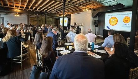 Teresa Sarkesian moderated a conversation with Jana Mosley at an OEN networking luncheon.