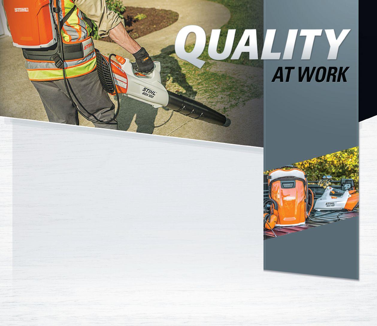 The STIHL BGA 100 is designed for the professional landscaper using a backpack battery system for “all day” use. It’s quiet, emission-free and compatible with the STIHL AR 3000 backpack battery. This lightweight blower, with an adjustable tube length, is a great combination of power and runtime. In fact, when in boost mode, the BGA 100 is the most powerful dedicated handheld blower in the STIHL range. This lithium-ion battery-powered blower even delivers performance superior to many gas-powered models.