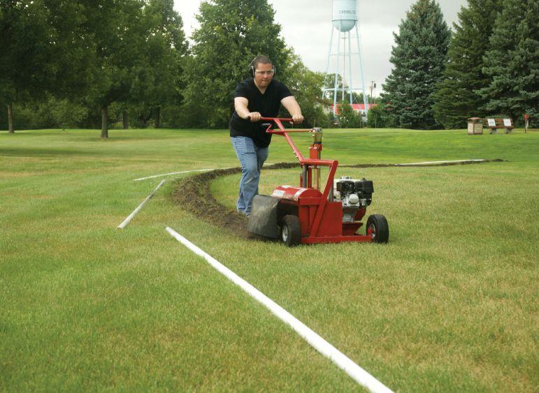 To protect the course against soil cupping that can occur after backfilling wide trenches, look for a mini trencher that digs narrow trenches. Mini trenchers require minimal backfill, which reduces the chance of cupping and helps ensure consistent grass growth.