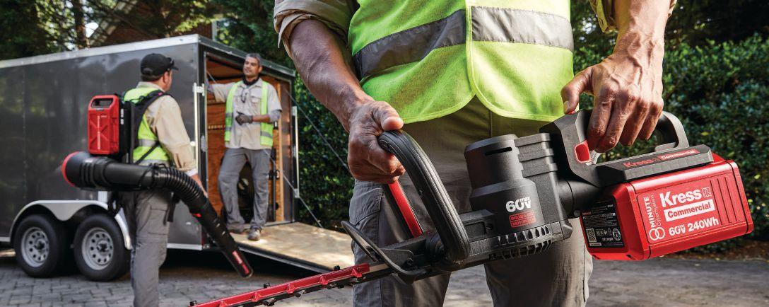 In addition to industry-leading charge times, Kress CyberSystem batteries produce higher power output –equivalent to a 55cc two-stroke engine – and offer longer lifespans – up to 3,000 lifecycles – than traditional lithium-ion batteries. This translates to cost savings for business owners, further demonstrating that sustainability and profitability can coexist without compromise.