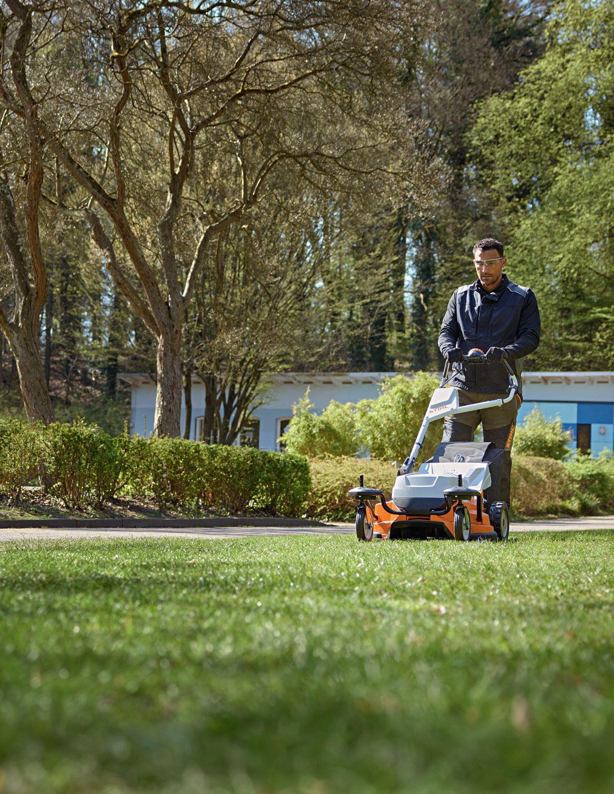 The NEW professional RMA 765 V battery self-propelled lawn mower is great for landscape professionals. This lawn mower features a 25" cutting width, a 2-blade flowoptimized mowing deck, 8 stage cut-height adjustment and electric vario wheel drive. Additionally, this mower has an 80-litre grass catcher box. The RMA 765 V can be powered in two ways, first using a AR 2000 L or AR 3000 L backpack battery, or second through the RMA 765 double battery adapter (ADA 700) powered by two AP batteries (6909 400 9401).