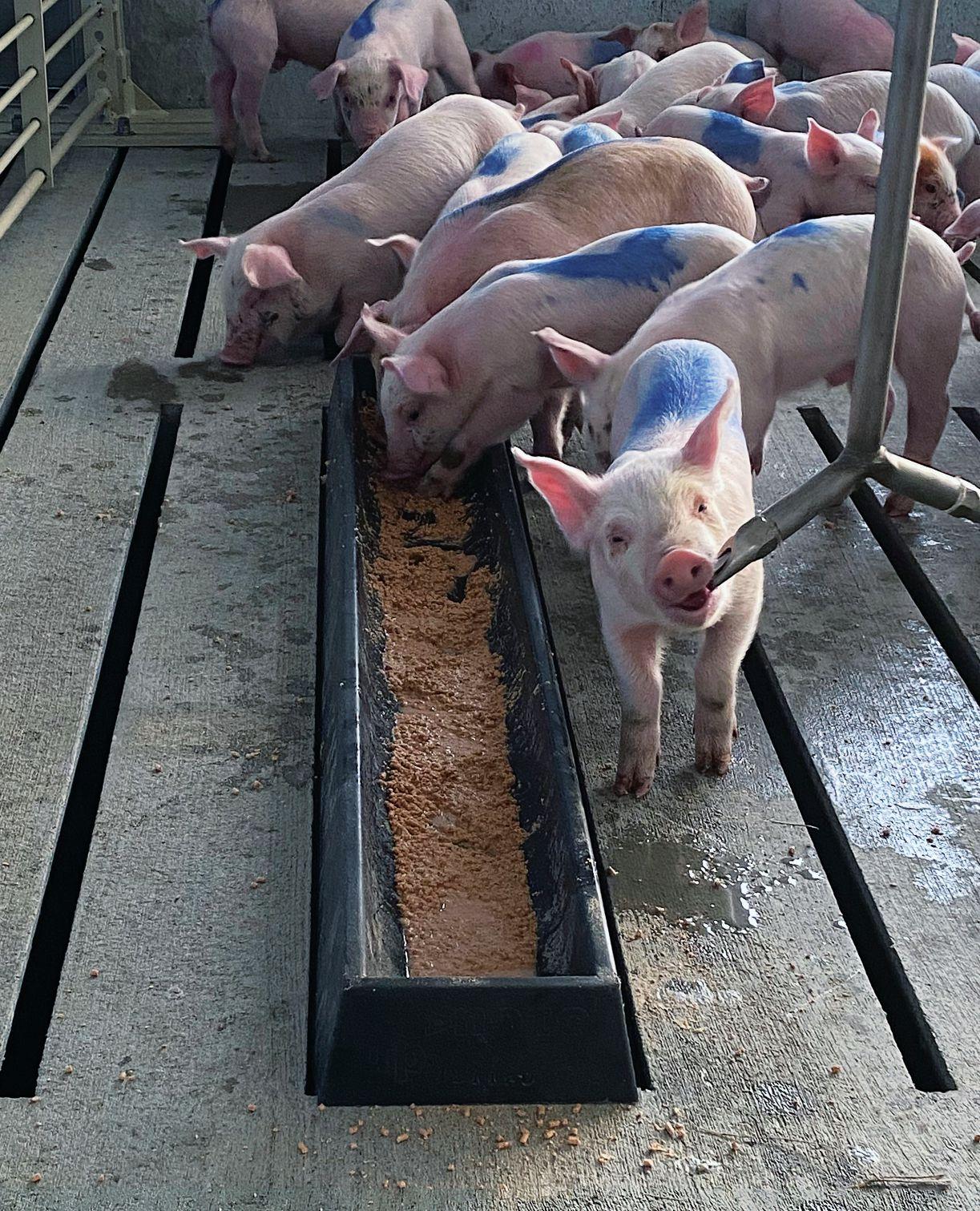 noting pigs which can’t find feed may fill up on water instead. “You don’t want to have too much in the water to discourage them from going to the feed.”