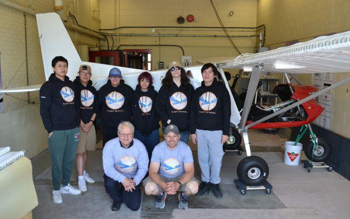 Eagle’s Wings Flight School’s BushCat Build team is winding up the school year after eight months of weekly after-school workshop sessions with local high school students. Seven students from Westpark School and Portage Collegiate Institute have been building an ultralight airplane together while gaining valuable experience using tools, reading manuals and instructions, working as part of a team, and troubleshooting problems as they arise.