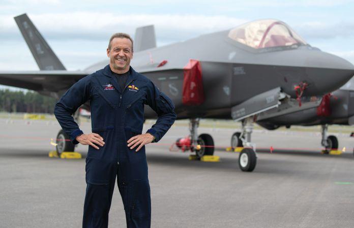 Billie Flynn, former Senior Test Pilot for Lockheed Martin’s F-35 program, prepares to fly to the Turku Air Show in Finland.