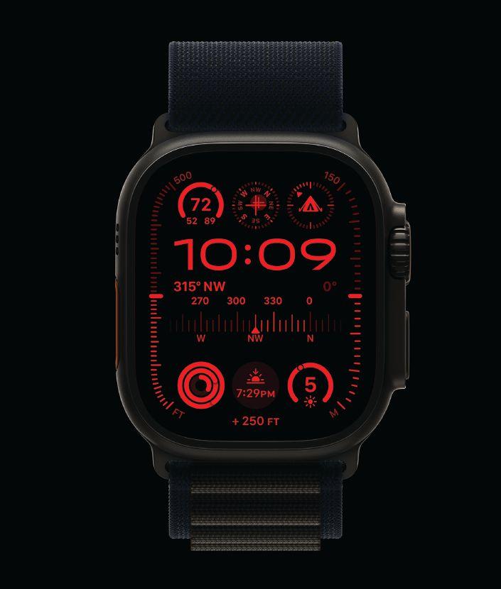A Night Mode feature has been added to the Apple ULTRA which turns the watch display to a vivid red, perfect for night flights.