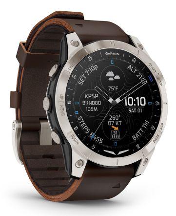 Part of Garmin’s battery success is the physical size of the its watches like the D2 Mach 1, which sports a titanium case with the choice of either a fine Italian leather strap or a titanium bracelet.