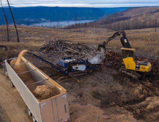 B.C. forest company Tsi Del Del Enterprises, in partnership with Borland Creek Logging, began a biomass operation last summer grinding up salvage wood from harvesting residuals and old burn areas.