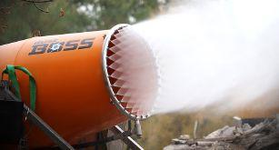 ent models to match the machines’ output to specific project requirements, delivering greater flexibility and reducing the total cost of equipment ownership. The VFD control will be available via a simple dial or remote control on three of the company’s DustBoss models: the DB-30, DB-45 and DB-60. All three use specialized nozzles and a ducted fan design to atomize the water flow into droplets 50-200 microns in size, which is the optimum for most dust control applications. Matching the droplets to the most common particle sizes delivers the greatest opportunity for them to collide and fall to the ground.