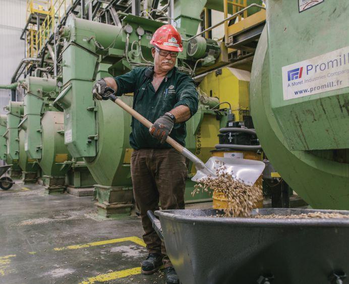 “Today we can really only effectively use sawdust and shavings.,” MacGougan says. “We’re building in flexibility on both lines to be able to use more low-value material like sawmill bark or biomass from the forest.”