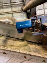 Residues entering the Grand River Pellet site are offloaded and stored in outdoor piles. On the existing line, fibre heads through a Schutte Buffalo wet hammer mill before entering the Thompson rotary dryer, heated by a KMW walking floor biomass burner running on hog fuel from the adjacent sawmill. Dried material is then treated to a Schutte Buffalo dry hammermill and fed into a dry silo awaiting the presses.