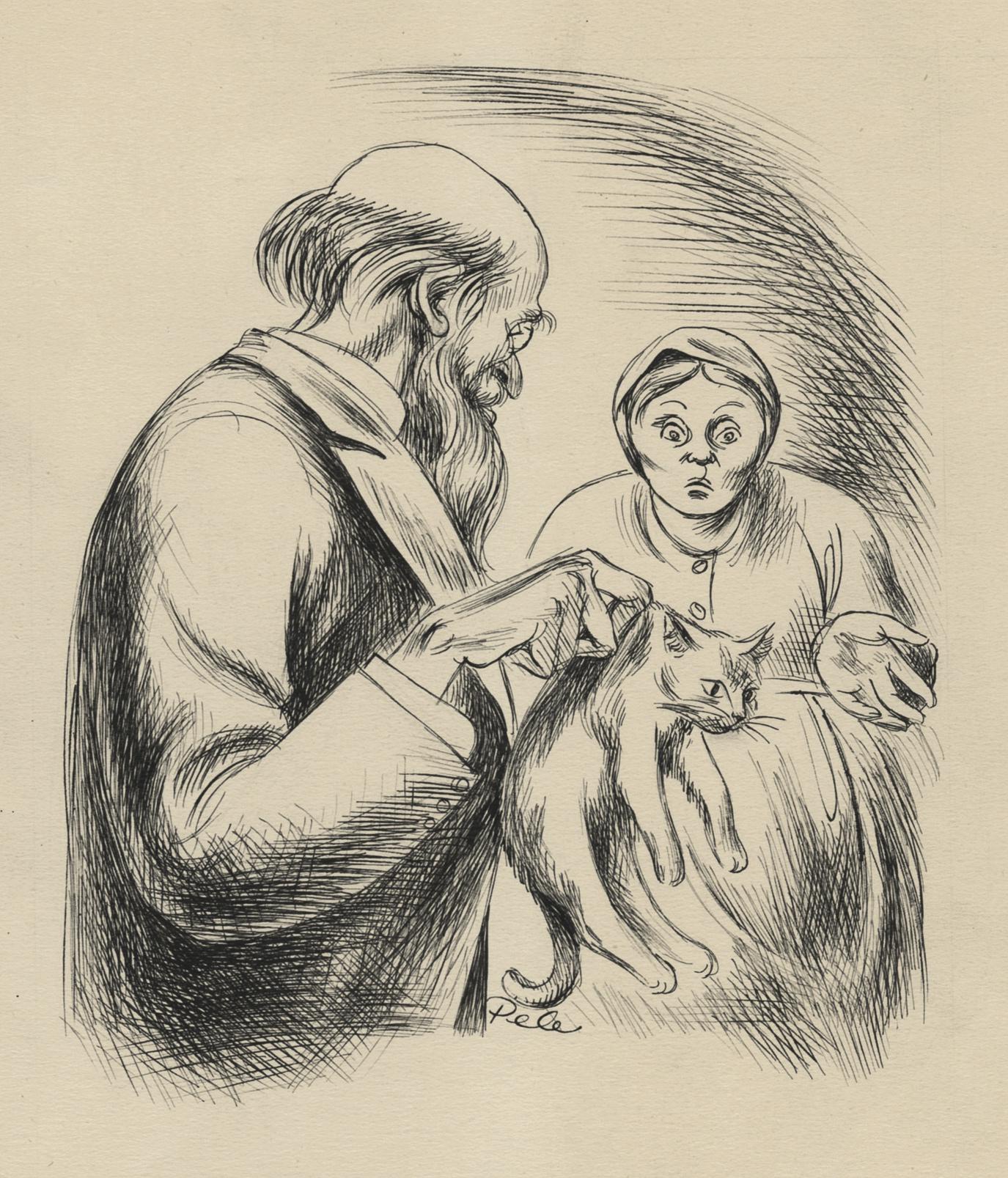 Ink drawing on ivory wove paper, ca. 1960; ink signed, lower center. Inv. no. WECA112.