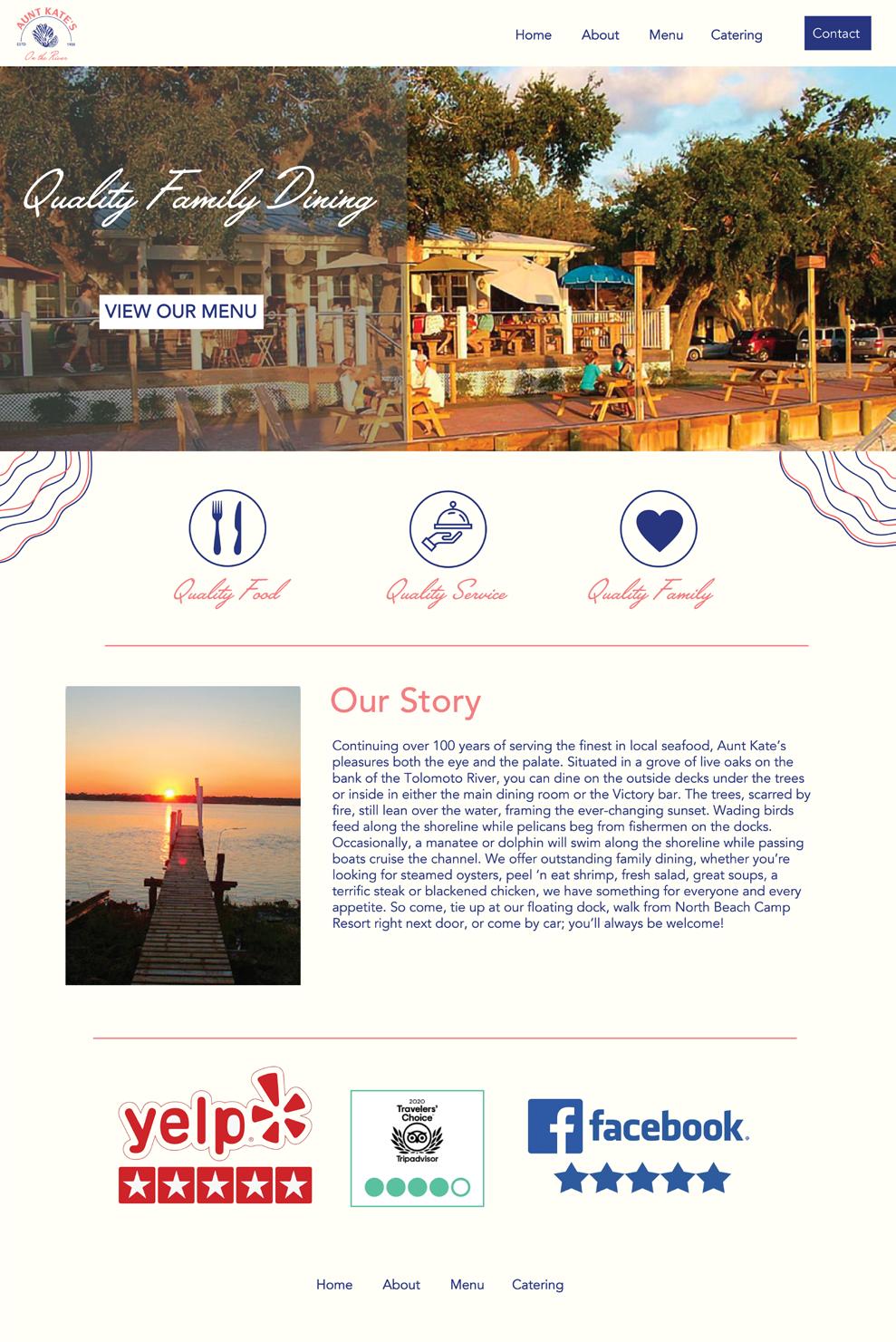Aunt Kate’s is a local restaurant located on the Tolomato River. This restaurant has over 100 years of history that are reflected throughout the building. The re-branding of this restaurant is meant to maintain the nautical themes as they are located on the water, while adding a more modern style. The history of the oyster is also important to the restaurant, as this was a trademark to their business early on. Thus, this new logo and branding maintains the history of the restaurant and adds a stylistic manner to the brand.