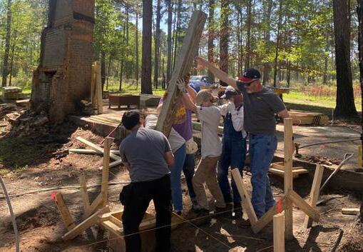 The site for the educational pavilion carries historical significance, as it had been the site of a hunting clubhouse built in the 1940s that had burned down in the 1960s. All that remained was the towering fifteen foot chimney and two foundation slabs. The team at Boggy Slough had been using a metal covering on one of the slabs to host groups for educational outreach.