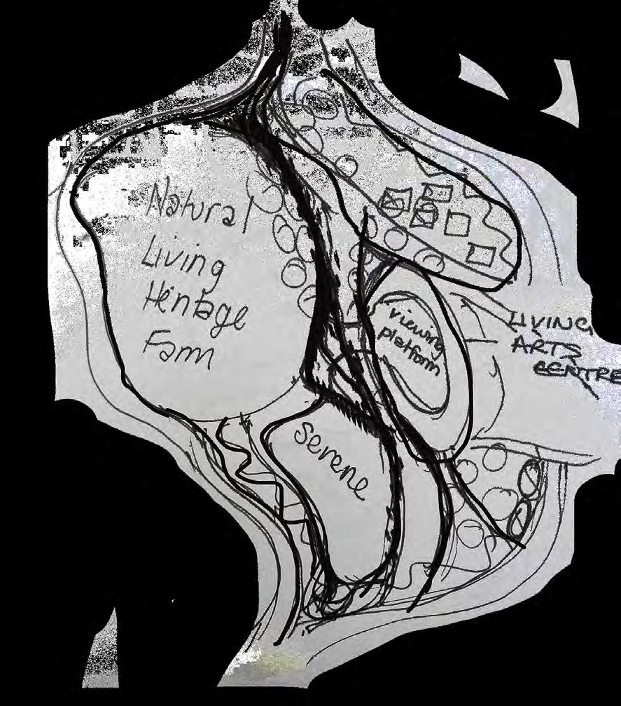 I introduced an extensive Urban Forest, to help oxygenate; filtrating water channels that fed into natural swimming pools, helping to rejuventate and an Arts & Technology Park to create a cultural energy and therefore, energise.