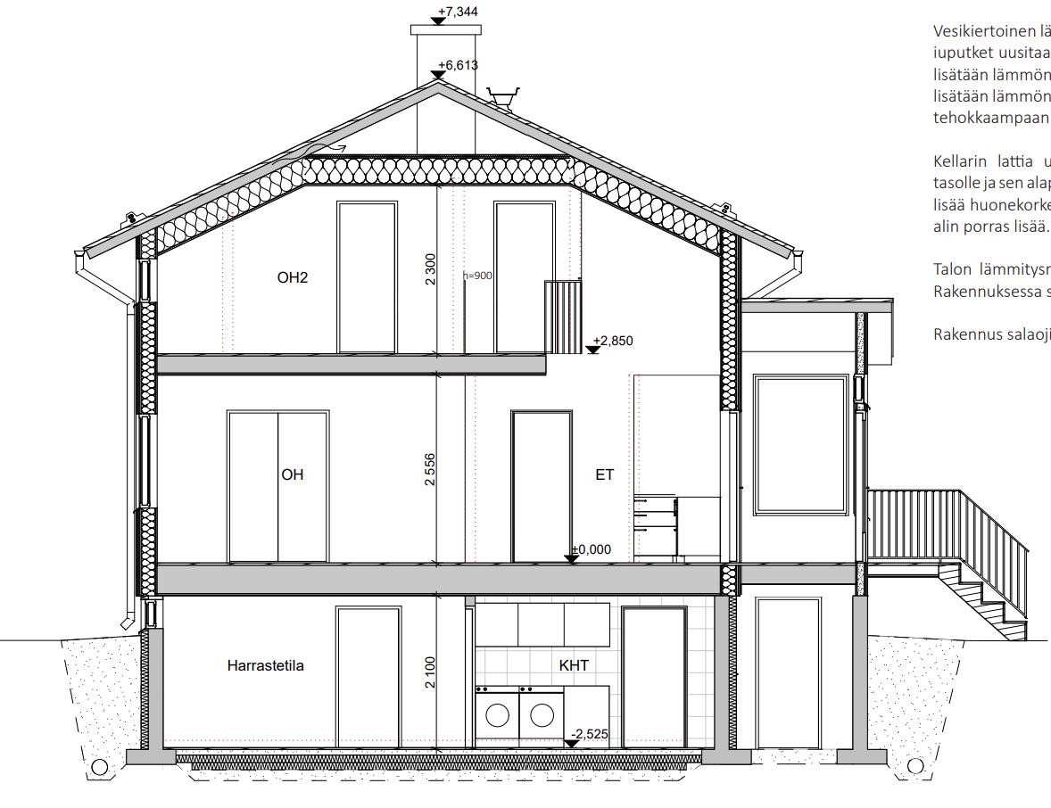Työssä huomioidaan teknisiä ratkaisuja lämmöneristyksestä ja ilmanvaihdosta.