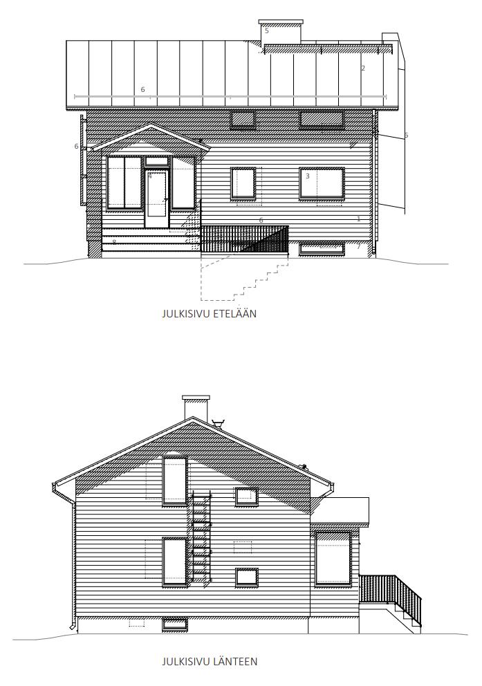 Julkisivut kadulle päin.
