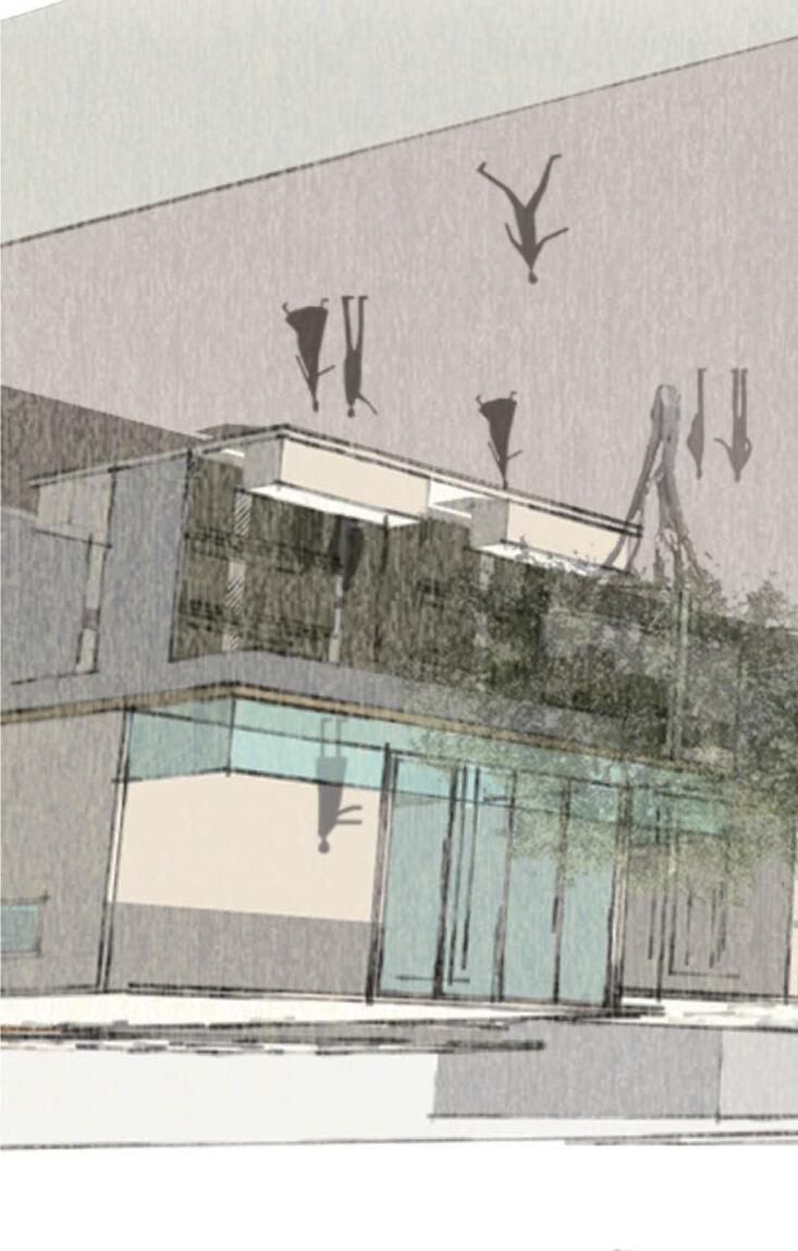 Placing arc walls and water into some of the spaces of inverted umbrella-structure areas to enhancing entertaining atmosphere, the possibility of stopping by, and exploratory.