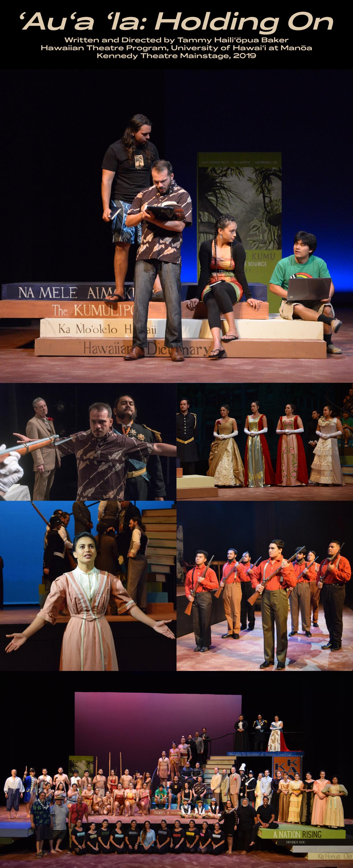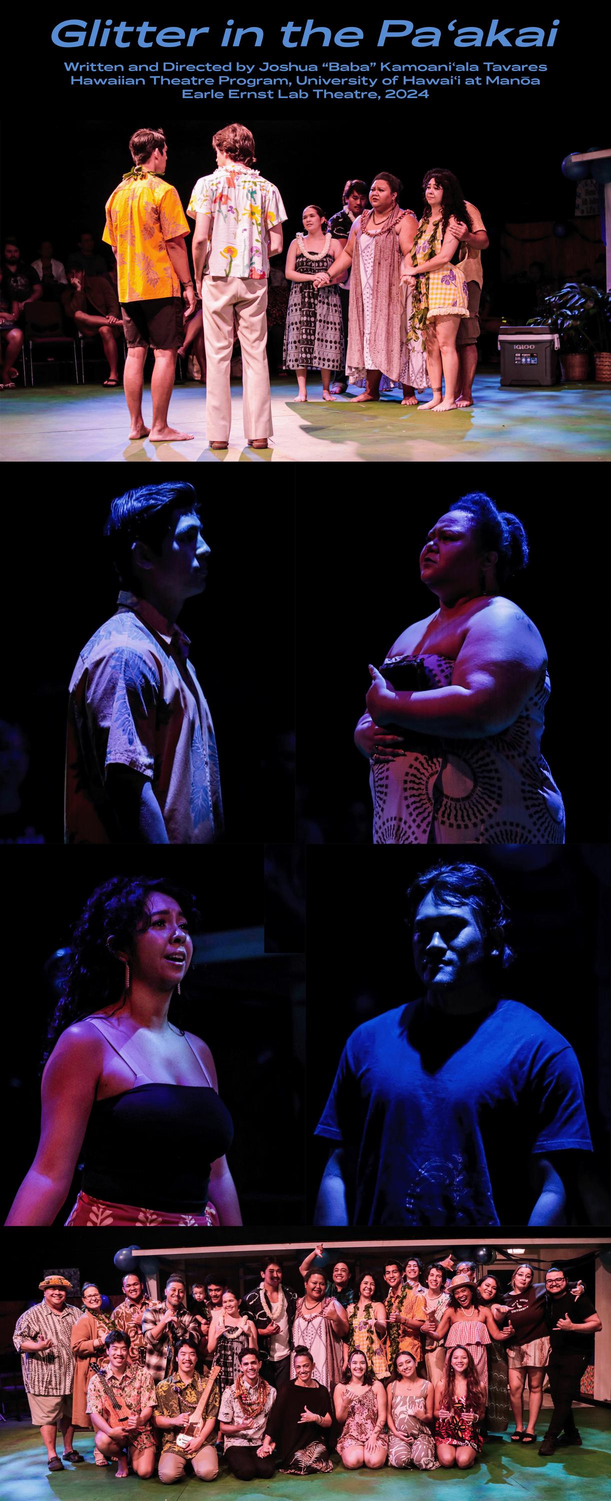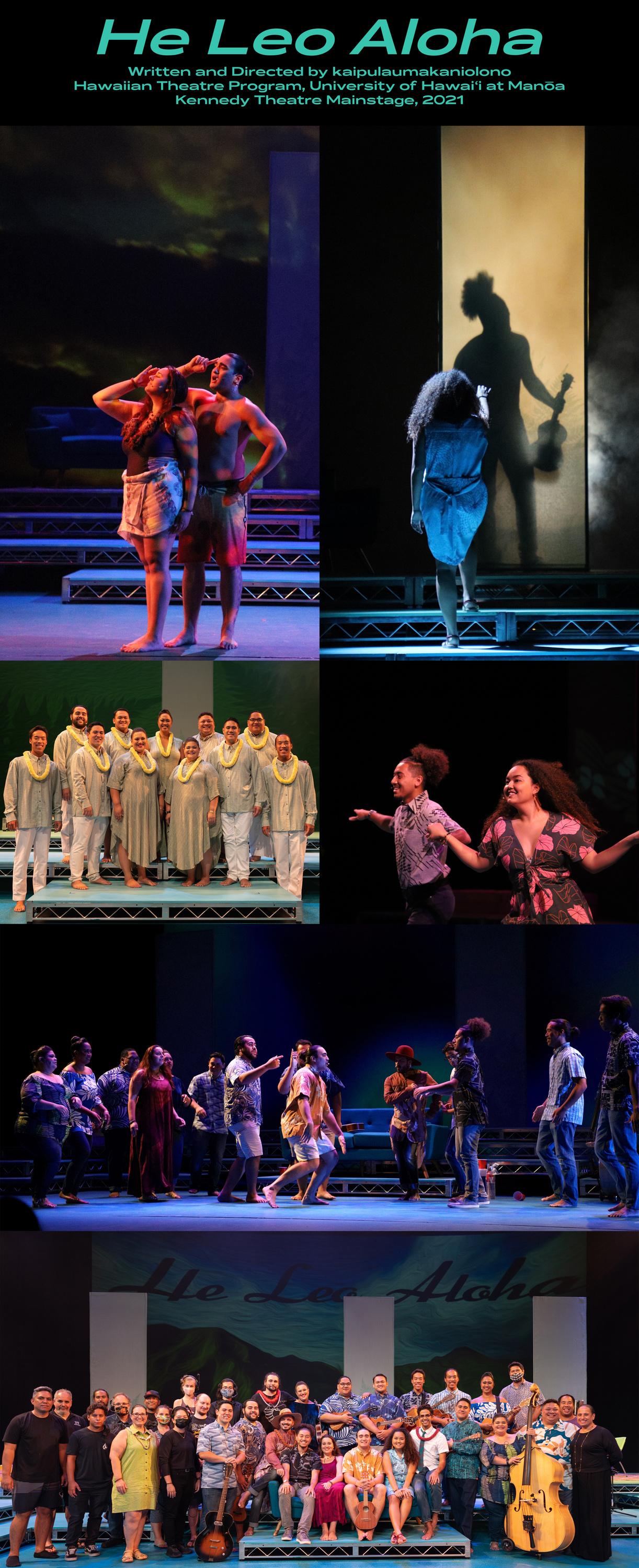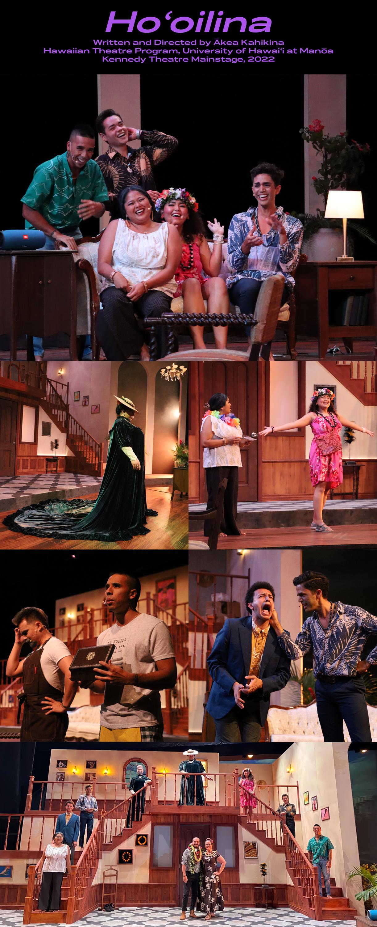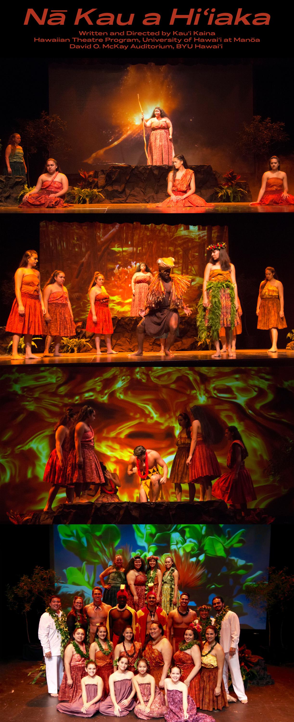 Lāʻieikawai was also, in fact, the very first production of any sort of Hawaiian content to be featured on Kennedy’s mainstage over a half a century after its founding. The program includes courses on the history of theatre in Hawai‘i, the study and analysis of indigenous Hawaiian theatre, and training in both traditional and contemporary Hawaiian performance forms. Original hana keaka productions reflect and honor the language, traditions, history and values of Kānaka Maoli. A primary focus of the program is to grow practitioners of hana keaka; actors, playwrights, directors, designers, technicians, and patrons in order to grow the profession of hana keaka. Through the vision and intentions of Ka Hālau Hanakeaka, a Hawaiian-medium theatre troupe founded by Hailiʻōpua and Kaliko Baker, coupled with the curriculum and productions of the Hawaiian Theatre Program, our hui continues to serve the community and build capacity in the discipline of Hawaiian theatre. Ua ao Hawaiʻi, ke ʻōlino nei.
