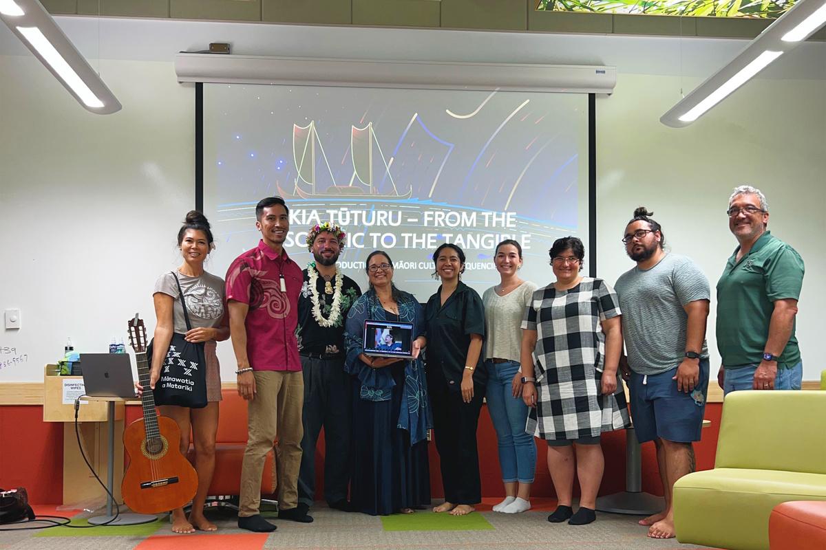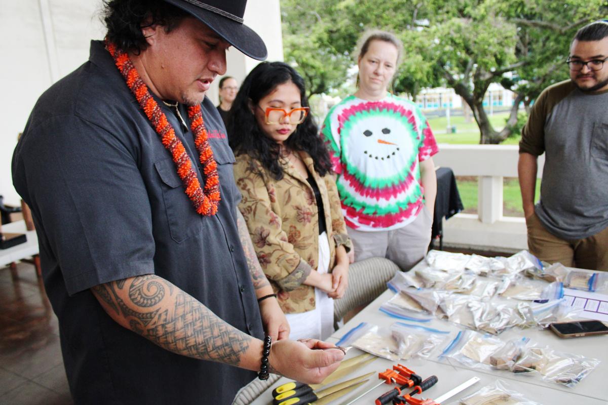 The Outreach and Recruitment Ma‘awe supports three graduate students through graduate assistantships supporting ANNO’s goals and deliverables. Institute members and graduate assistants visit neighboring island and Pacific island communities to hold informational sessions with the intent of attracting potential students to the academic programs of ANNO’s members. Outreach involves hosting and supporting events for the community both within and beyond the University, including guest artist workshops on hana no‘eau practices.