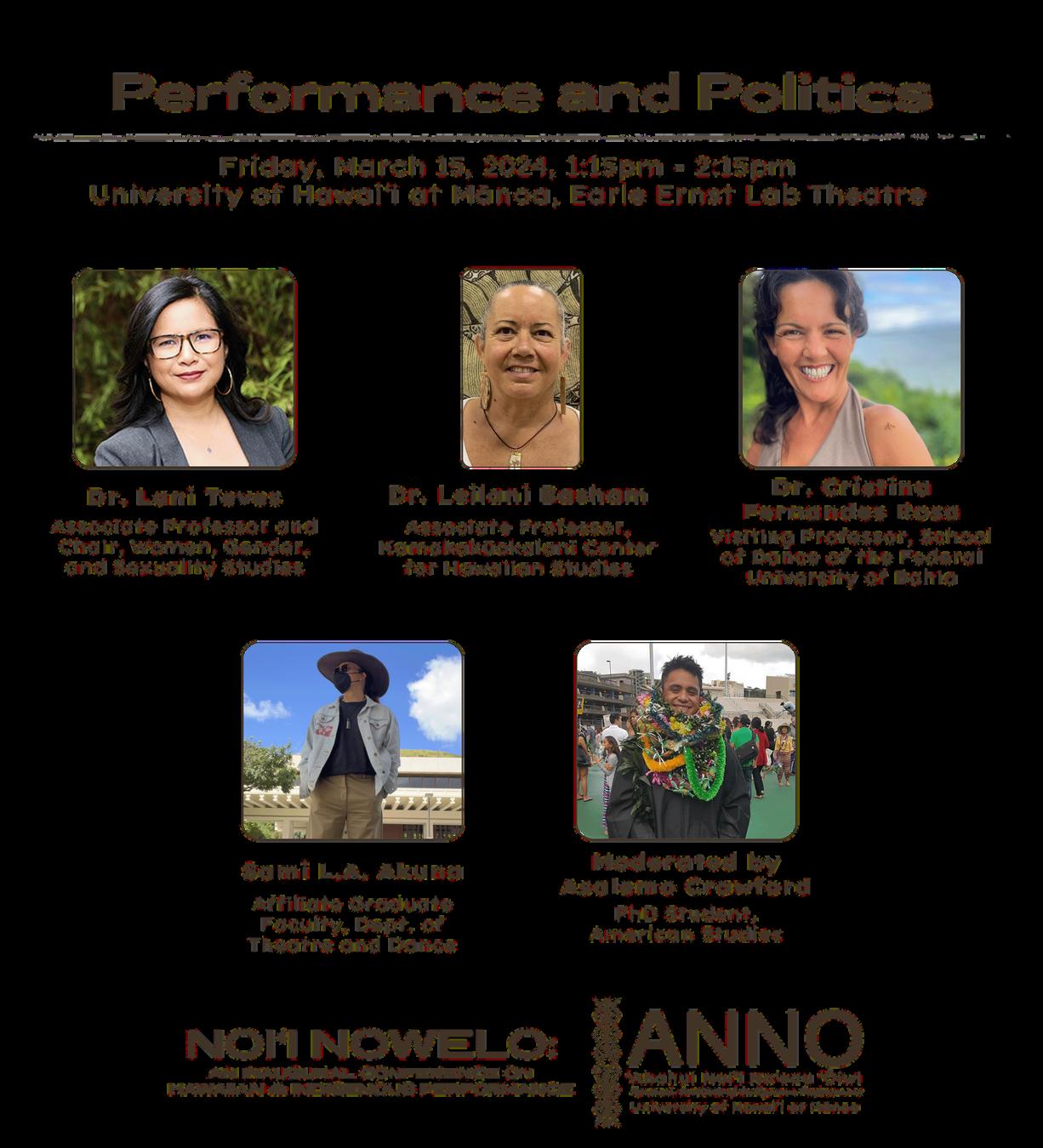 The ʻAhahui Noiʻi Noʻeau ʻŌiwi – Research Institute of Indigenous Performance (ANNO) is a new initiative stimulating scholarship in Hawai‘i and the global Indigenous community that highlights the artistic practices of aboriginal peoples. ANNO was established through the University of Hawaiʻi at Mānoa’s Provost’s Strategic Investment Initiative, a campus-wide competition designed to increase cross-unit and crossdisciplinary collaboration, in Fall of 2022.