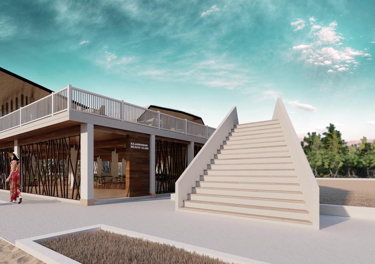 As a connector to bar coffee and also to be open space for enjoying beach atmosphere like sunset.