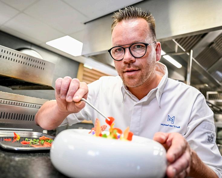 Mag ik aan u voorstellen: chef-kok Michael van ‘t Hoff (www.michaelvanthoff.nl), werkzaam bij restaurant Bij de Burgemeester in Bleskensgraaf. Ik had het genoegen deze chef-kok te ontmoeten tijdens ons bezoek aan dit restaurant, een tip van Annelieke Heppenhuis, tekstschrijver voor Reuksmaakstoornis.nl. En wat een tip was dit! Vanaf de eerste stap in het prachtige gebouw aan de Kerkstraat zijn mijn vrouw en ik door Michael en zijn brigade heel prettig ontvangen en echt in de watten gelegd. Wat een welkom en wat een mooie avond hebben wij gehad.