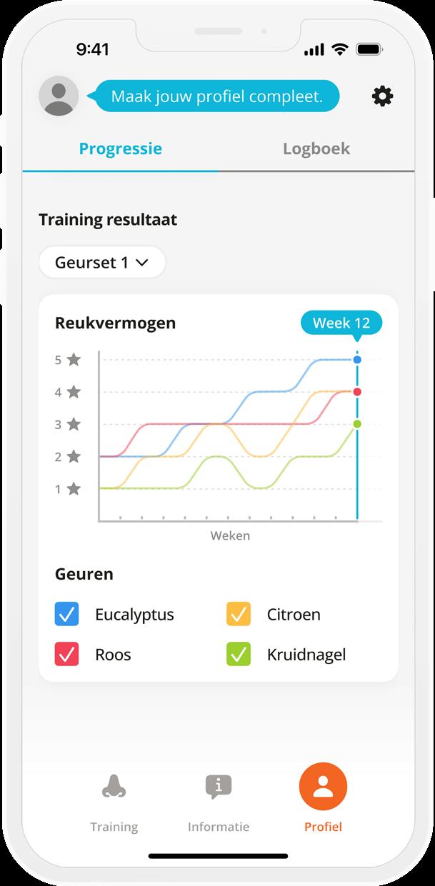 Om dit nog toegankelijker te maken, zijn we bezig met de ontwikkeling van de nieuwe Reuktraining-app. Deze app begeleid je door de reuktraining, biedt handige herinneringen en geeft waardevolle informatie over de voortgang. De designs zijn al klaar, maar er is nog financiering nodig om de app volledig te realiseren. We hebben al een aantal sponsoren gevonden, maar om