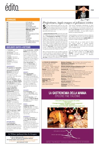 SOMMAIRE 04 : _______________________ CITY-BUZZ 12 : _______________________ ASSOCIATION 15 : _______________________ ECOLOGIE 16 : _______________________ CULTUROSCOPE 24 : _______________________ WEB CINE MUSIQUE 26 : _______________________ SPECIAL FIFM 32 : _______________________ 1001 NUITS 36 : _______________________ DECO 38 : _______________________ MODE & SEDUCTION 43 : _______________________ LOISIRS 44 : _______________________ SPORT 46 : _______________________ FOODING 52 : _______________________ SORTIR 55 : _______________________ LE TEMPS DES FETES 58 : _______________________ LE SAVIEZ-VOUS