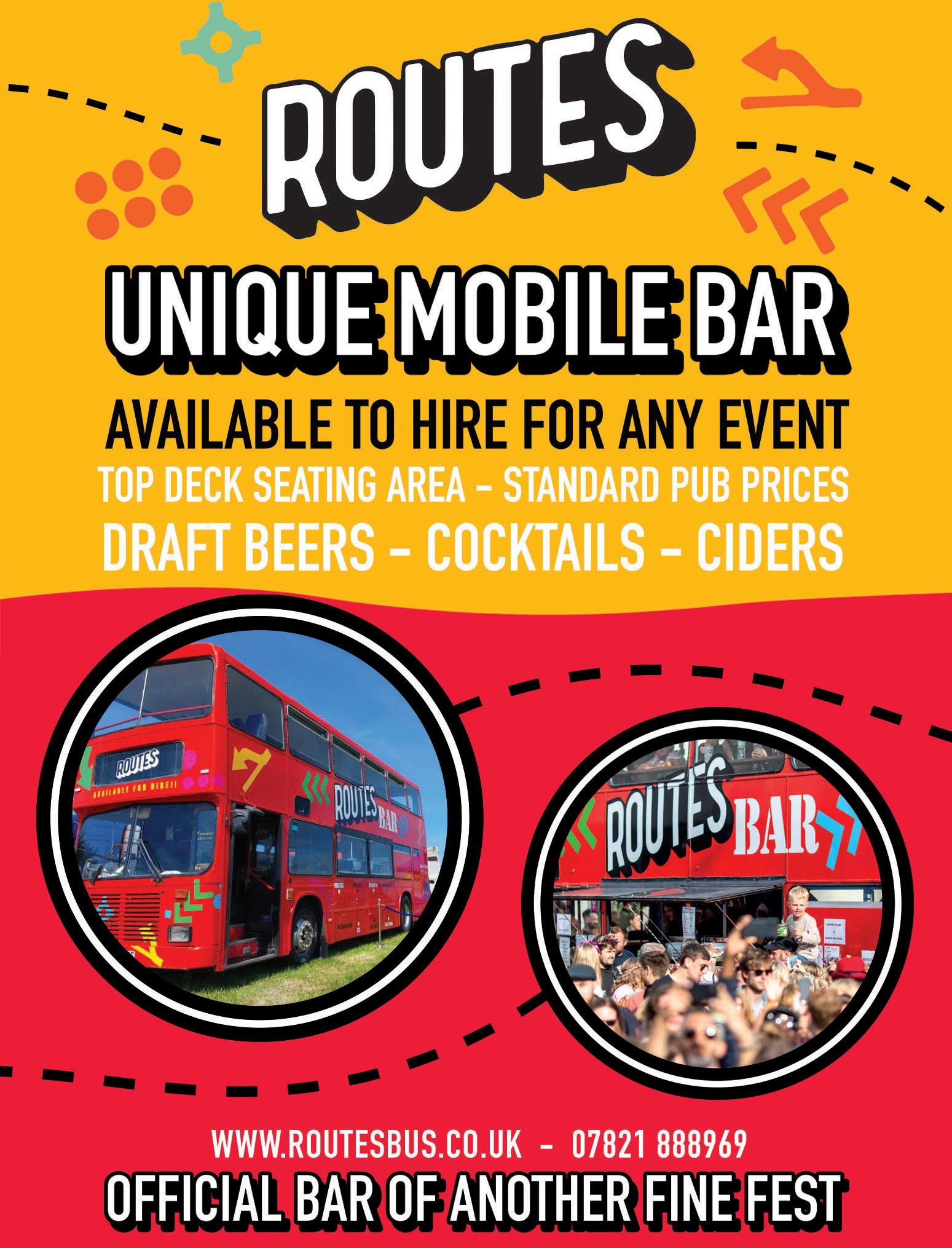 Purchase from our OFFICIAL BARS: ROUTES BUS at the MAIN STAGE ANOTHER FINE BAR at ANOTHER FINE STAGE LAKES BAR HIRE on NEW MARKET STREET This will help ensure the future of the festival. These are one of the only ways we can create income during our FREE festival.