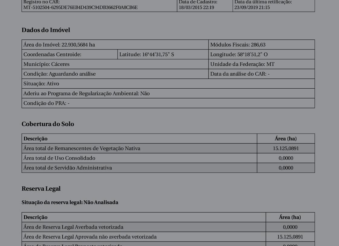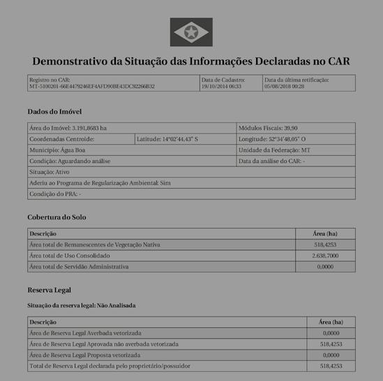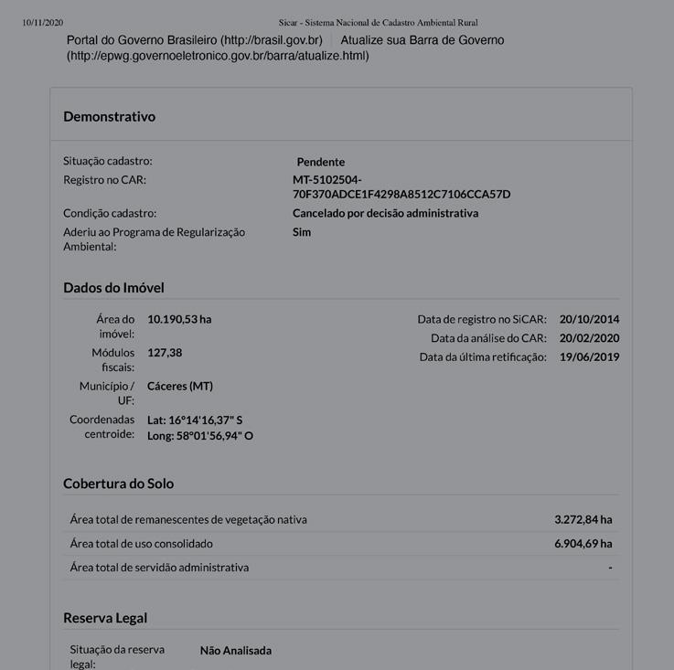 Under Brazil’s Forest Code, self-reported registration of rural properties (including identification of property boundaries) with the Rural Environmental Registry (Cadastro Ambiental Rural, CAR) is mandatory.95 Designed to enable monitoring and enforcement of compliance with environmental regulations, CAR registrations are frequently used to stake and secure land claims through