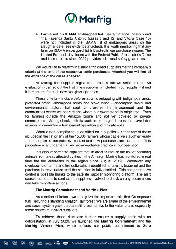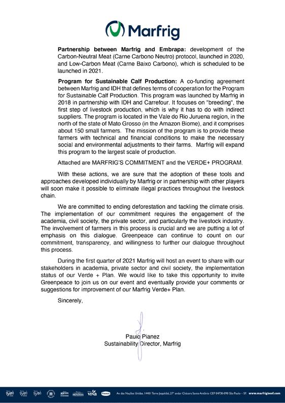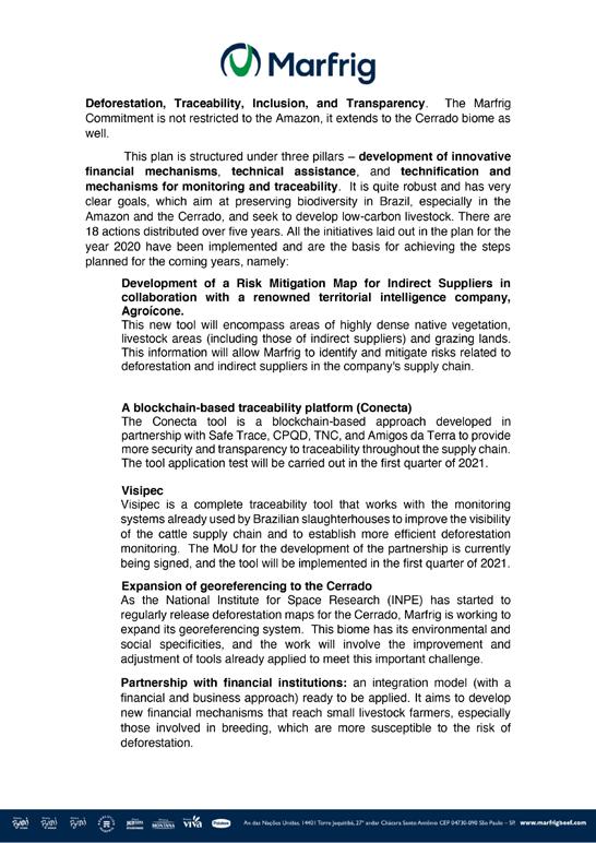 Marfrig (2021a) Annex to letter from Paulo Pianez, Sustainability Director – Marfrig, 14 January 2021, full text available in Annex 2 Marfrig (2021b) Letter from Paulo Pianez, Sustainability Director – Marfrig, 14 January 2021, full text available in Annex 2