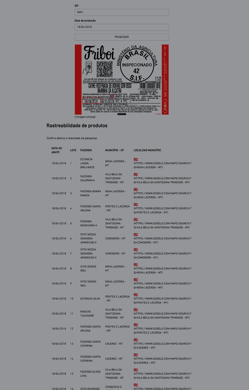 Ministério da Agricultura, Pecuária e Abastecimento website ‘Consulta de estabelecimento nacional: Dados do estabelecimento nacional’ http://extranet.agricultura.gov. br/sigsif_cons/!ap_estabelec_nacional_cons