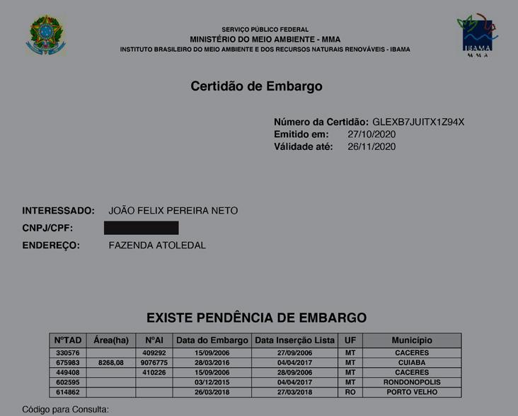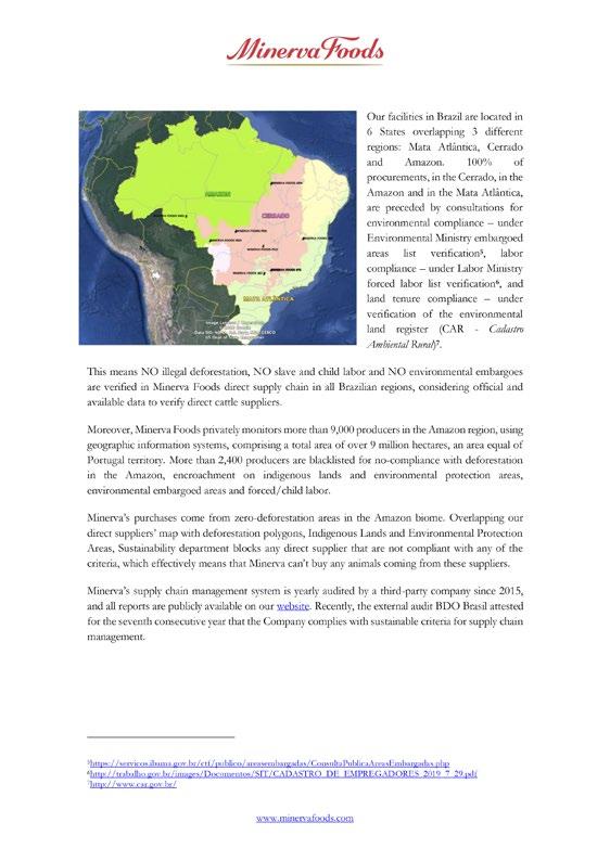 2019) suppliers of Brazil’s leading meat processors, JBS, Marfrig and Minerva, and that are linked to the devastating 2020 fires in the Pantanal, environmental violations and/or property registration irregularities.16
