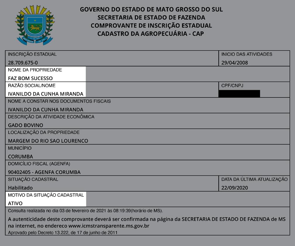 Secretaria de Estado de Fazenda de Mato Grosso do Sul website ‘Consulta Pública do Cadastro Fiscal e Emissão do Comprovante de Inscrição Estadual’ https://cpe.sefaz.ms.gov.br/