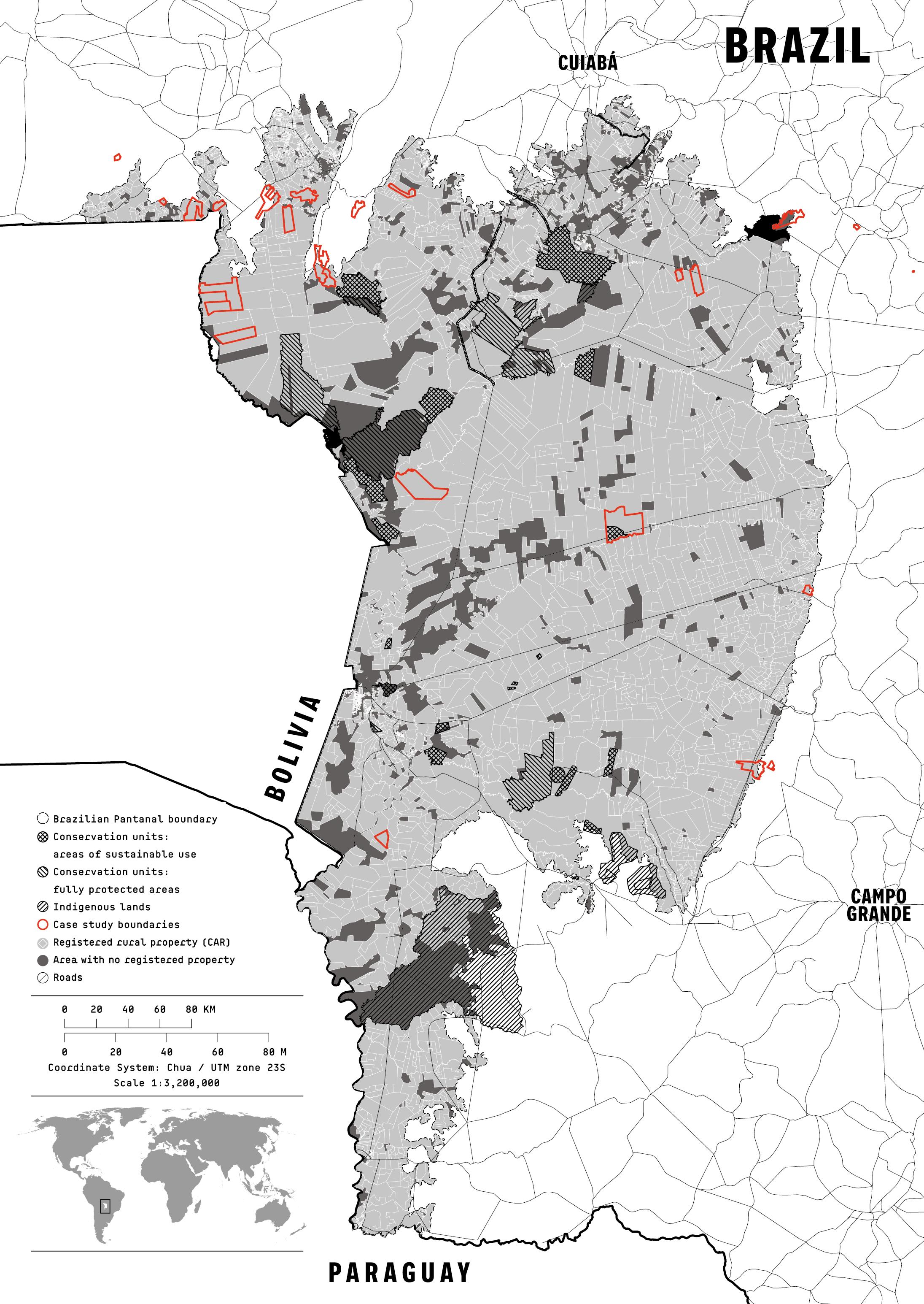 Despite its value as a vital habitat for jaguars9 and other wildlife,10 about 90% of the Brazilian Pantanal is under self-declared land claims, where ownership is not verified by the state.11 As a consequence, these land claims often overlap with Indigenous lands or public conservation units (including federal, state and municipal reserves). In the Pantanal, these land claims overlap with about 28% of Indigenous lands12 and 58% of public conservation units.13 About 80% of the Pantanal is reportedly managed as cattle ranches.14