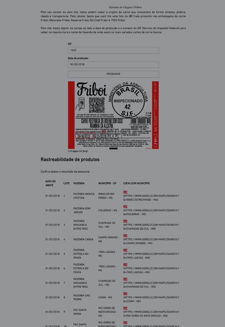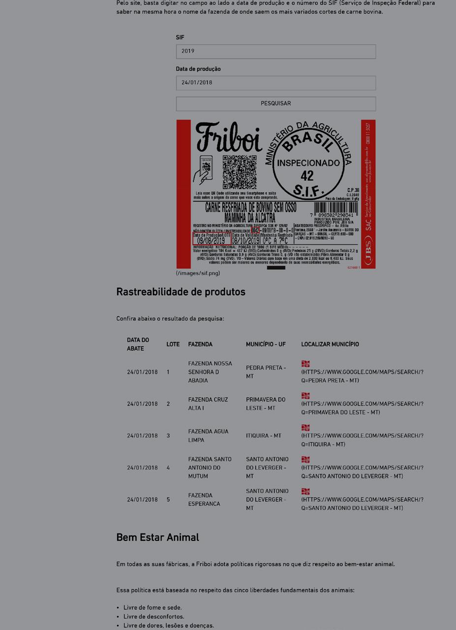 Marfrig website ‘Conheça a origem da nossa carne’ https:// rastreabilidade.marfrig.com.br/GadoLegal/ Marfrig website ‘Marfrig Verde+’ https://sustentabilidade.marfrig.com.br/#Compromisso
