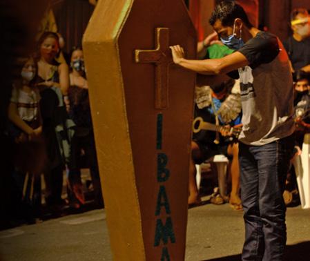‘Pass the cattle’ is the title of a January 2021 report published by the coalition Observatório do Clima. Its cover features an image of the Minister of the Environment Ricardo Salles, who made infamous the idiomatic phrase, which refers to pushing a large volume of things through with minimal scrutiny. In an April 2020 ministerial meeting whose minutes were later made public by a decision of the Supreme Court, Salles recommended wholesale deregulation of environmental and other rules while the media were occupied by the Covid-19 pandemic. Since the beginning of the Bolsonaro administration, Salles has systematically worked to dismantle environmental protection, slashed the budget and staffing of the environmental regulatory agency IBAMA and transferred powers from the Ministry of the Environment.