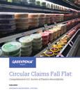Despite the equivalent of 80 trash trucks per day7 of unmanaged plastic waste entering U.S. lands, rivers, and coastal waters and increasing concern about the environmental and human health impacts of microplastic exposure,8 the companies and big brands that make and sell disposable plastic products continue to promote recycling as the answer to our mounting plastic problem. The relentless focus on this ineffective and unworkable approach flies in the face of the hard facts presented in the previous two Greenpeace USA “Circular Claims Fall Flat” reports9 and this new 2025 update. These reports collectively offer an unclouded assessment of the state of plastic recycling in the U.S. over a five-year period, providing transparent, traceable data that counters the flood of industry-sponsored statistics and wishful thinking posing as credible evidence.