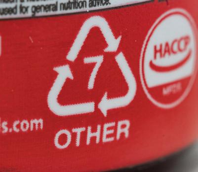 Resin Codes which look like the chasing arrows recycling symbol, introduced by SPI (now PLASTICS)