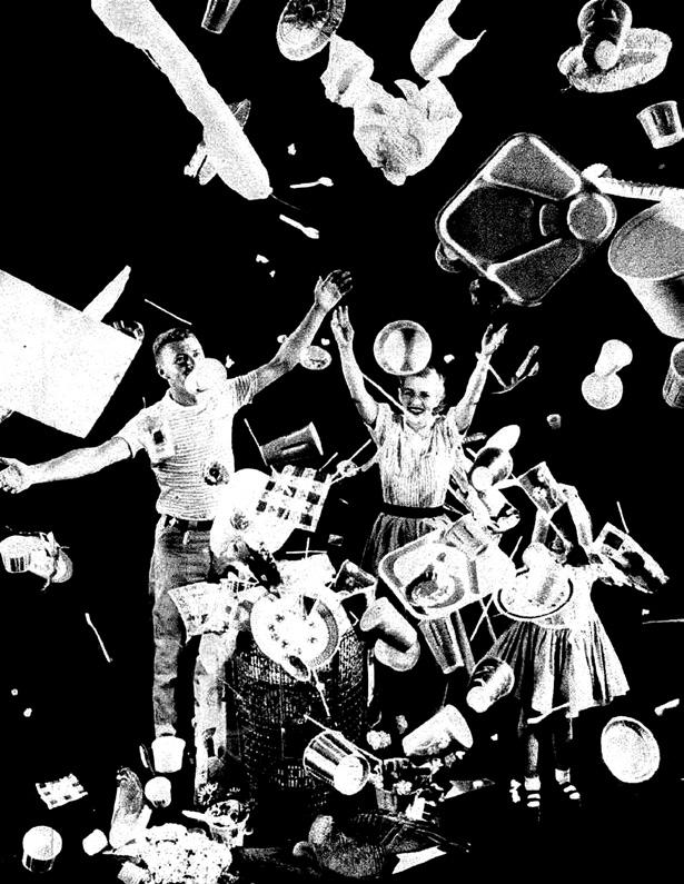 This image featured in a 1955 LIFE magazine article called "Throwaway Living" which celebrated a new, modern lifestyle populated by a variety of "disposable items (which) cut down houseold chores". 70 years later the same casual attitude to plastic waste is pervasive, propped-up by the false assertions of the plastics industry that recycling is the solution to plastic waste.