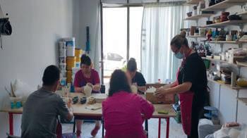 Κέντρου Διημέρευσης - Ημερήσιας Φροντίδας είχαμε τη χαρά να φιλοξενήσουμε για λίγες ώρες μέλη του Κέντρου Ημέρας του Σ.Ο.Ψ.Υ. Πατρών. Αρχικά μιλήσαμε για την τέχνη της κεραμικής, τα απαραίτητα υλικά και τα στάδια επεξεργασίας που χρειάζεται ο πηλός ώσπου να γίνει δημιουργία. Ταυτόχρονα πραγματοποιήθηκε επίδειξη τροχού και κατασκευή κεραμικών σκευών με επεξήγηση τα στάδια κατασκευής από τον κεραμίστα, εργαζόμενο