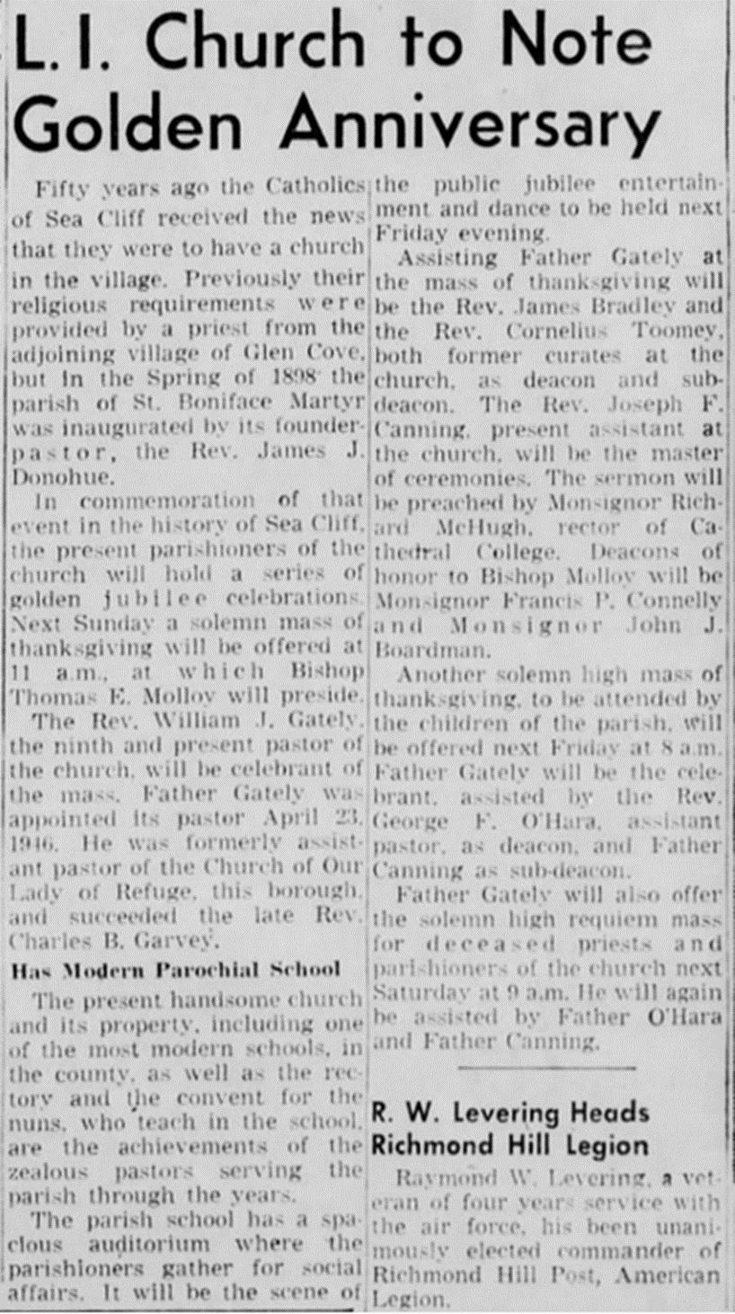 How the Brooklyn Daily Eagle newspaper reported the parish’s planning for its 50th Anniversary in 1948.