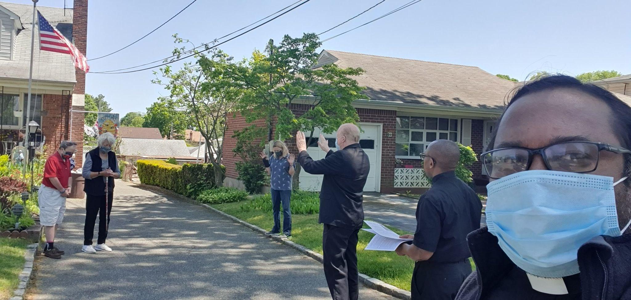 Fathers Kevin Dillon, Chinthaka Perera and Azubuike Igwegbe visited parishioners outside their homes and conducted drive-by blessings in front of the church.